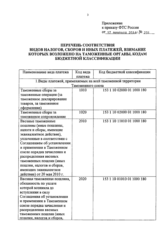 ПРИКАЗ ФТС РФ от 17.02.2014 N 231