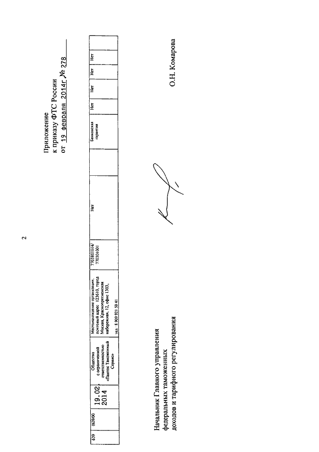 ПРИКАЗ ФТС РФ от 19.02.2014 N 278