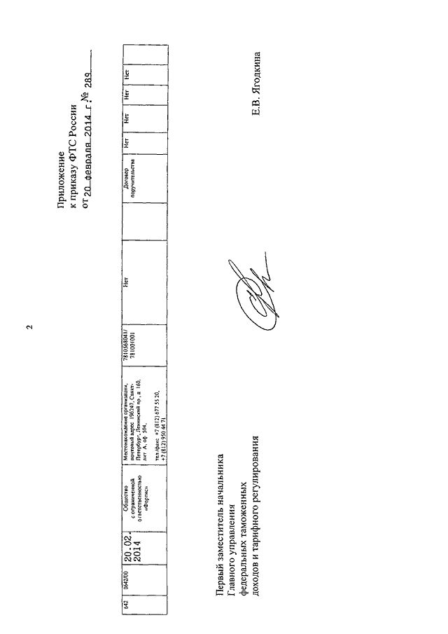 ПРИКАЗ ФТС РФ от 20.02.2014 N 289