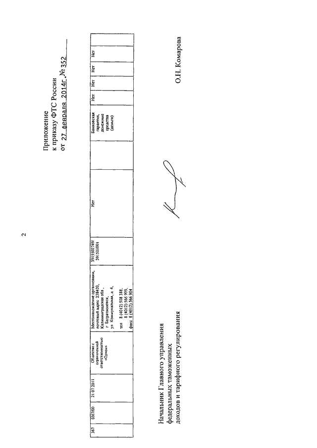 ПРИКАЗ ФТС РФ от 27.02.2014 N 352