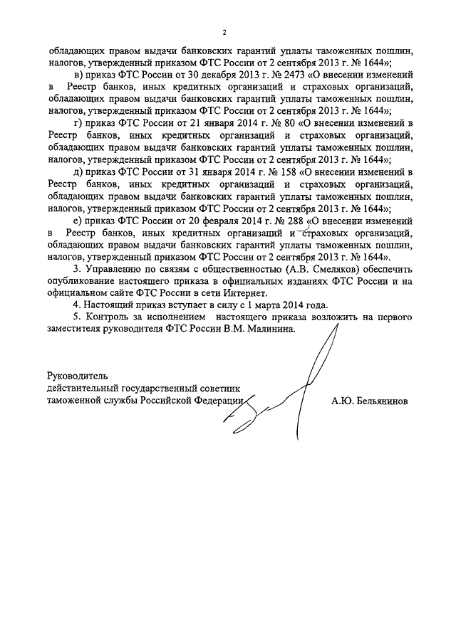 "О ВНЕСЕНИИ ИЗМЕНЕНИЙ В РЕЕСТР БАНКОВ, ИНЫХ КРЕДИТНЫХ ОРГАНИЗАЦИЙ И СТРАХОВЫХ ОРГАНИЗАЦИЙ, ОБЛАДАЮЩИХ ПРАВОМ ВЫДАЧИ БАНКОВСКИХ ГАРАНТИЙ УПЛАТЫ ТАМОЖЕННЫХ ПОШЛИН, НАЛОГОВ, УТВЕРЖДЕННЫЙ ПРИКАЗОМ ФТС РОССИИ ОТ 2 СЕНТЯБРЯ 2013 Г. N 1644"