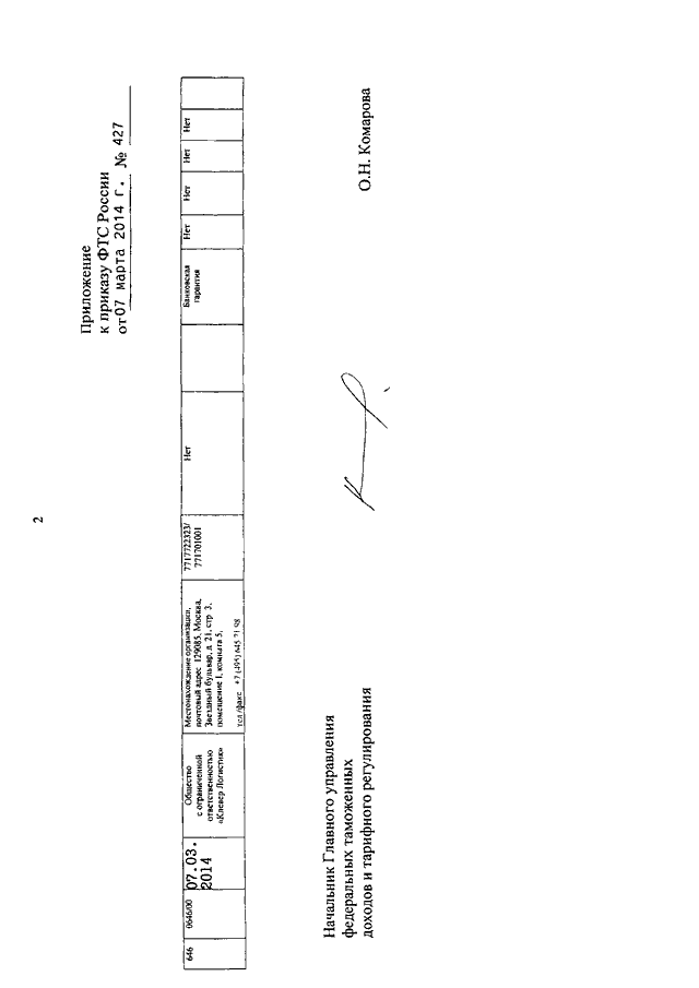 ПРИКАЗ ФТС РФ от 07.03.2014 N 427