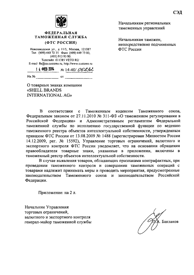 ПИСЬМО ФТС РФ от 14.02.2014 N 14-40/06832