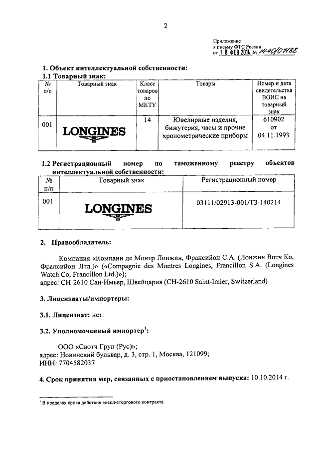 "О ТОВАРНОМ ЗНАКЕ "LONGINES"