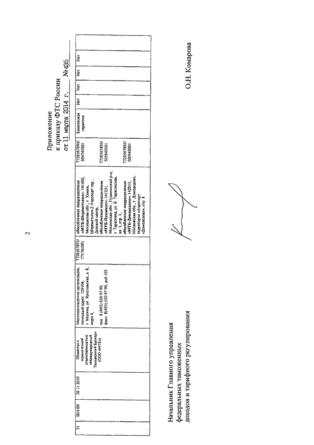 ПРИКАЗ ФТС РФ от 11.03.2014 N 435