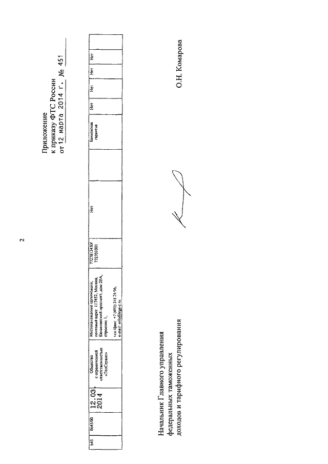 ПРИКАЗ ФТС РФ от 12.03.2014 N 451