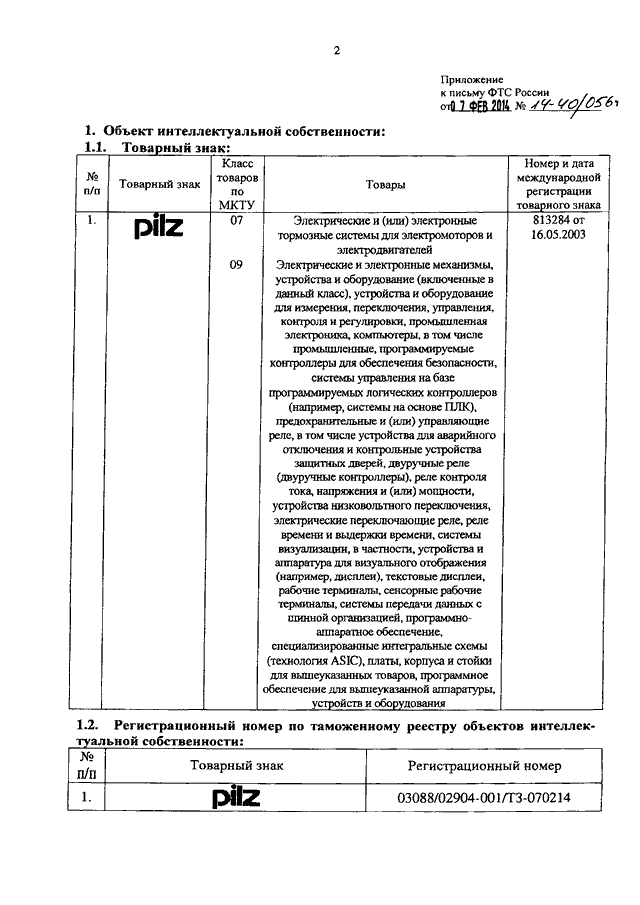 "О ТОВАРНОМ ЗНАКЕ "PILZ"