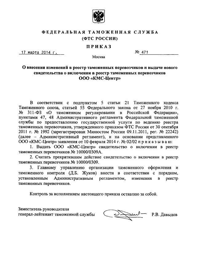ПРИКАЗ ФТС РФ от 17.03.2014 N 471