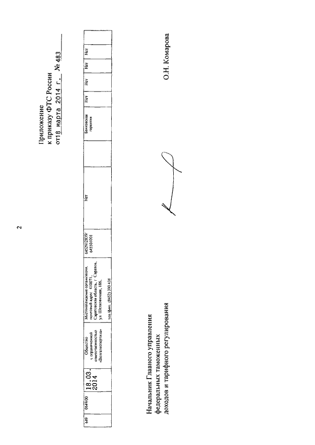 ПРИКАЗ ФТС РФ от 18.03.2014 N 483