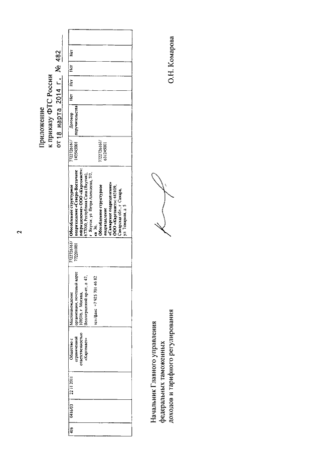 ПРИКАЗ ФТС РФ от 18.03.2014 N 482
