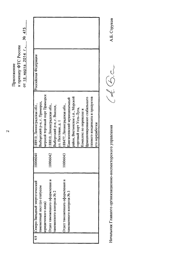 ПРИКАЗ ФТС РФ от 18.03.2014 N 475