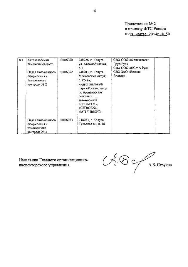 ПРИКАЗ ФТС РФ от 19.03.2014 N 501