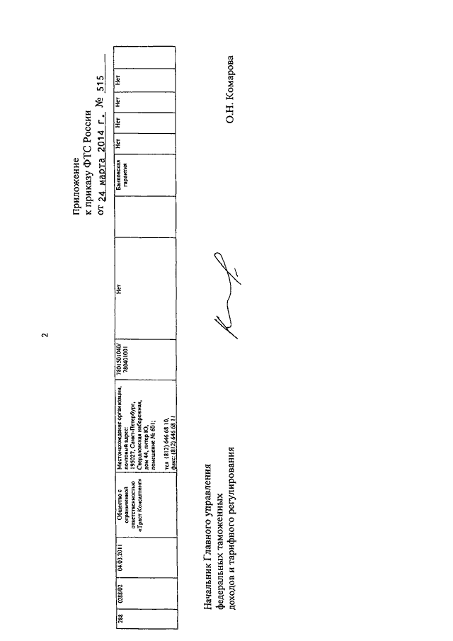 ПРИКАЗ ФТС РФ от 24.03.2014 N 515