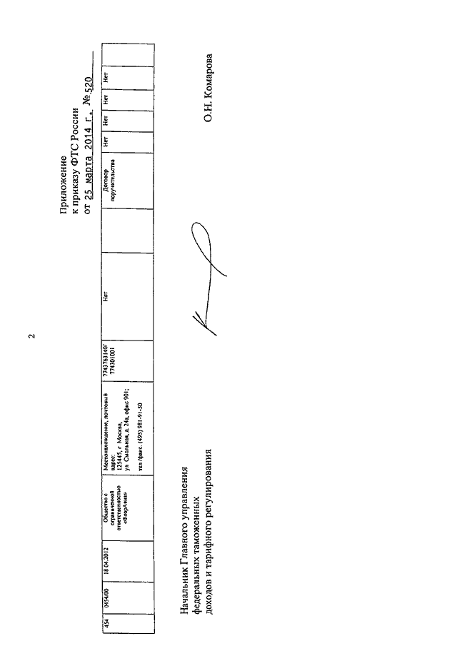 ПРИКАЗ ФТС РФ от 25.03.2014 N 520