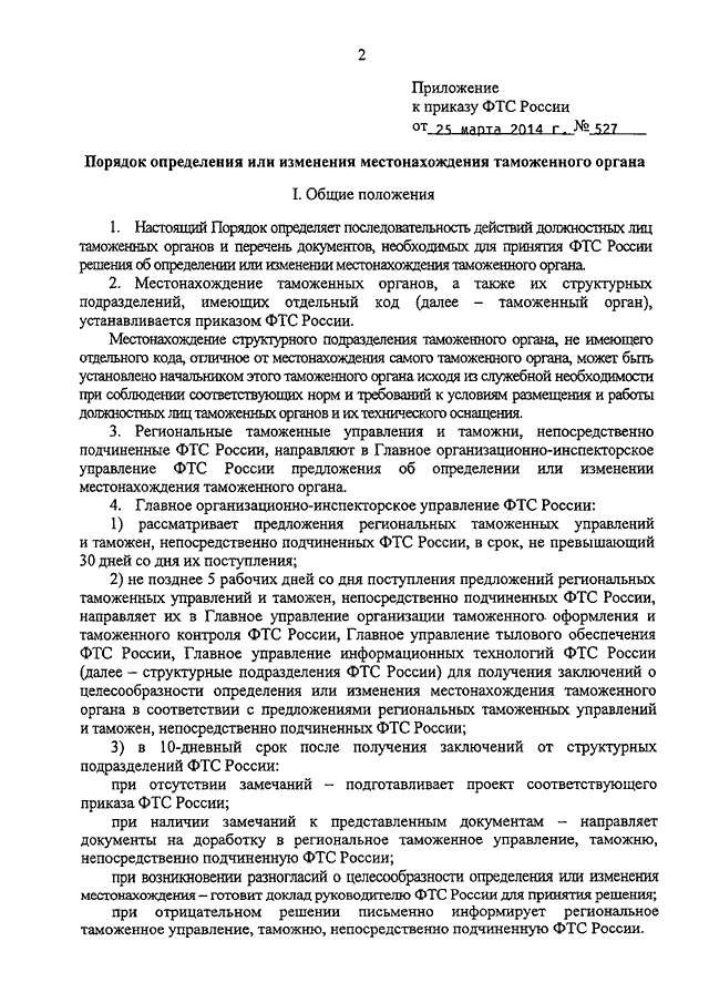 ПРИКАЗ ФТС РФ от 25.03.2014 N 527