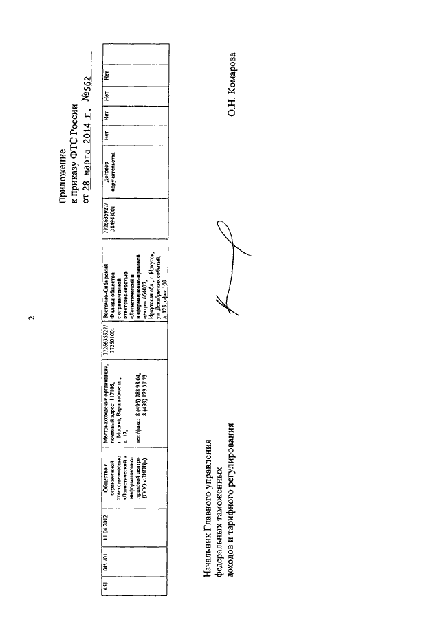 ПРИКАЗ ФТС РФ от 28.03.2014 N 562