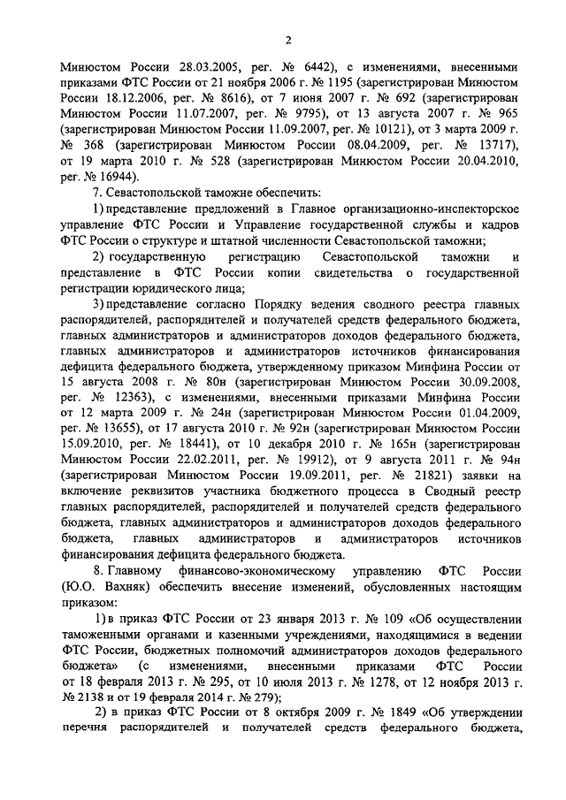 ПРИКАЗ ФТС РФ от 31.03.2014 N 580