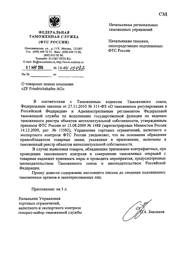 ПИСЬМО ФТС РФ от 07.03.2014 N 14-40/10482