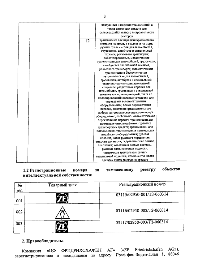 "О ТОВАРНЫХ ЗНАКАХ КОМПАНИИ "ZF FRIEDRICHSHAFEN AG"
