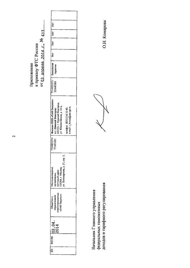 ПРИКАЗ ФТС РФ от 03.04.2014 N 613