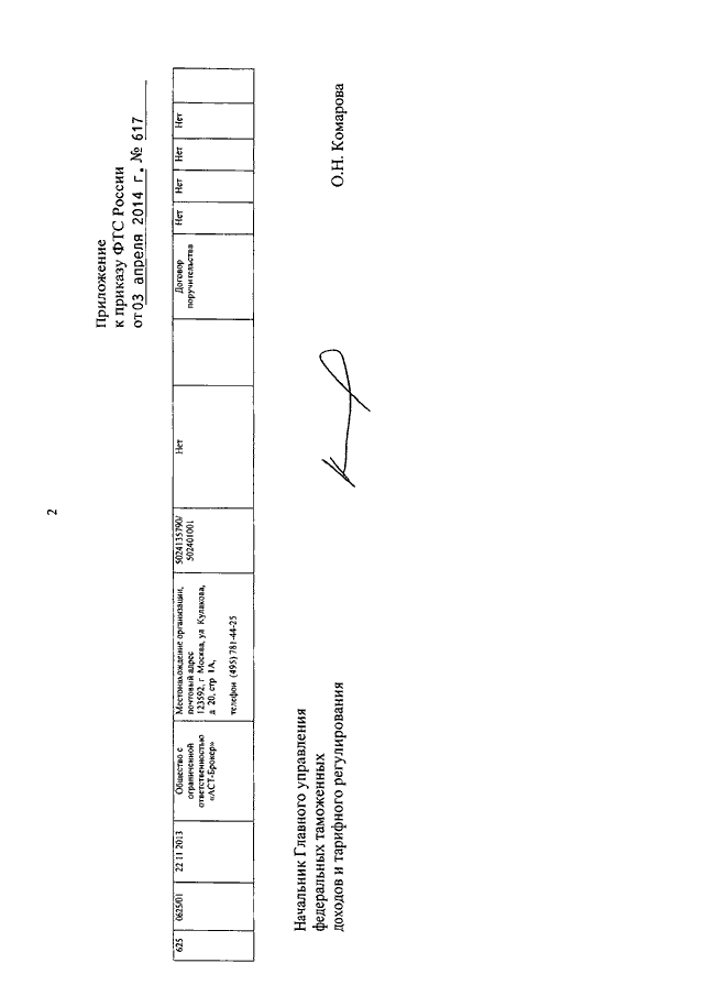 ПРИКАЗ ФТС РФ от 03.04.2014 N 617
