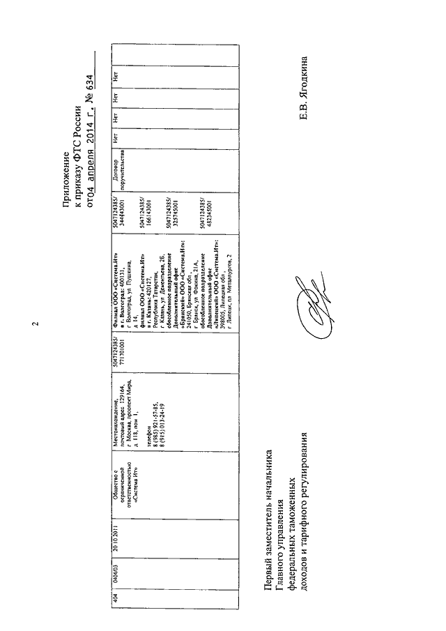 ПРИКАЗ ФТС РФ от 04.04.2014 N 634
