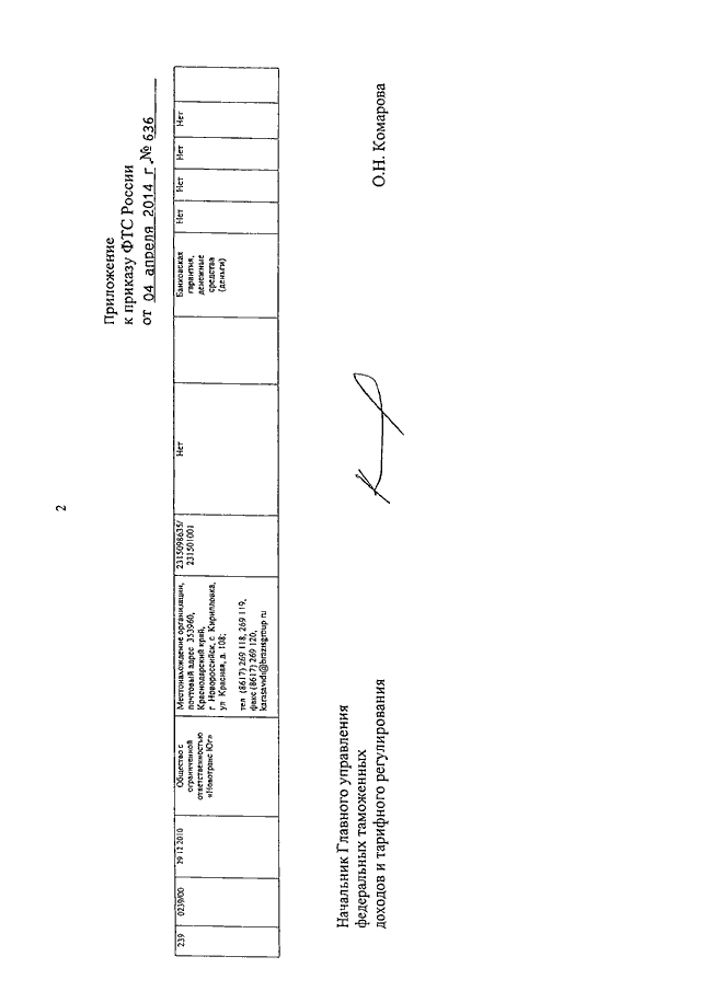 ПРИКАЗ ФТС РФ от 04.04.2014 N 636
