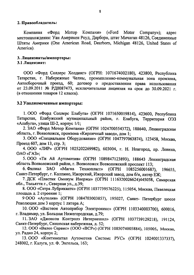 "О ТОВАРНЫХ ЗНАКАХ КОМПАНИИ "FORD MOTOR COMPANY"