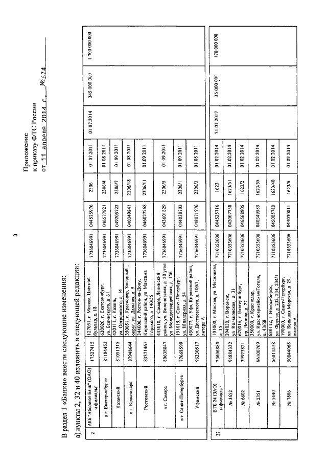 ПРИКАЗ ФТС РФ от 11.04.2014 N 674
