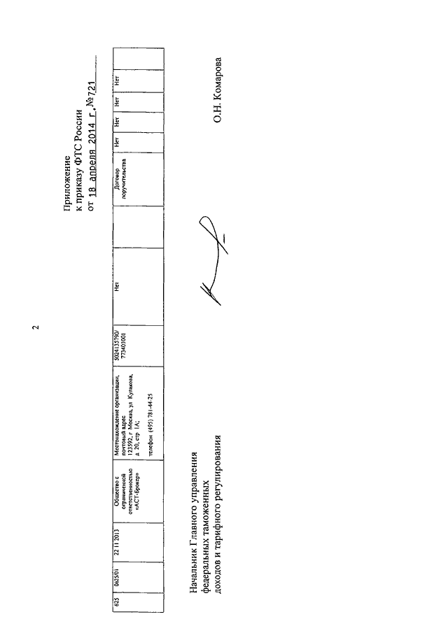 ПРИКАЗ ФТС РФ от 18.04.2014 N 721
