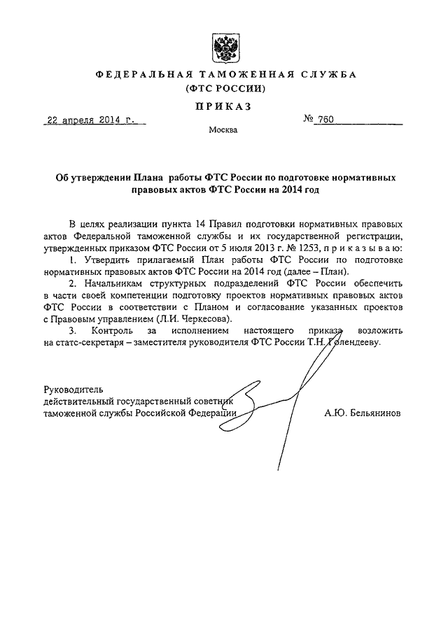 ПРИКАЗ ФТС РФ от 22.04.2014 N 760