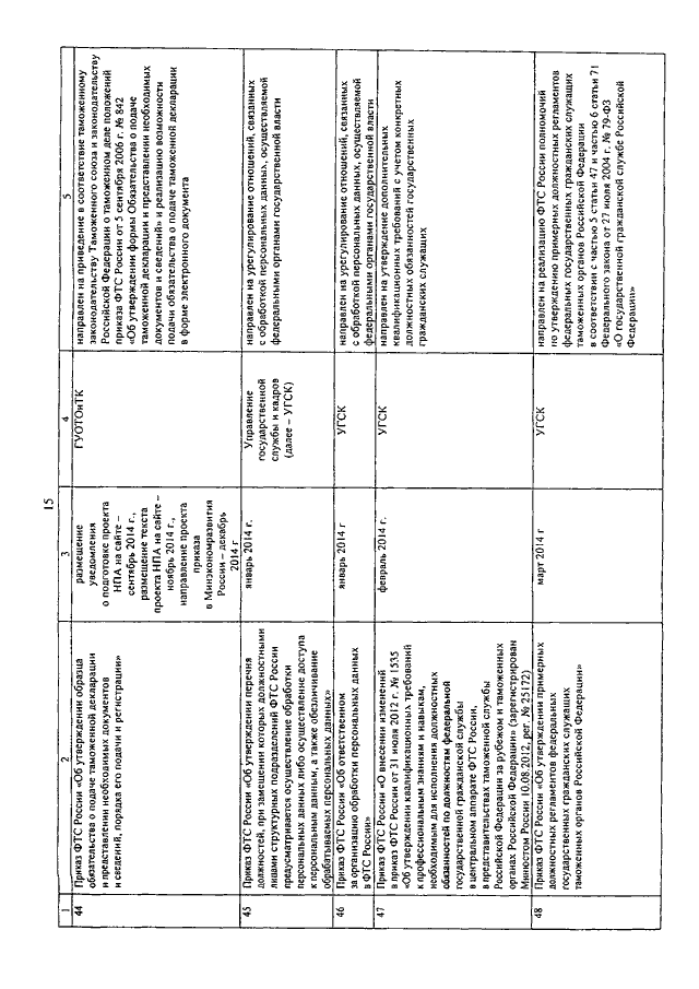 "ОБ УТВЕРЖДЕНИИ ПЛАНА РАБОТЫ ФТС РОССИИ ПО ПОДГОТОВКЕ НОРМАТИВНЫХ ПРАВОВЫХ АКТОВ ФТС РОССИИ НА 2014 ГОД"