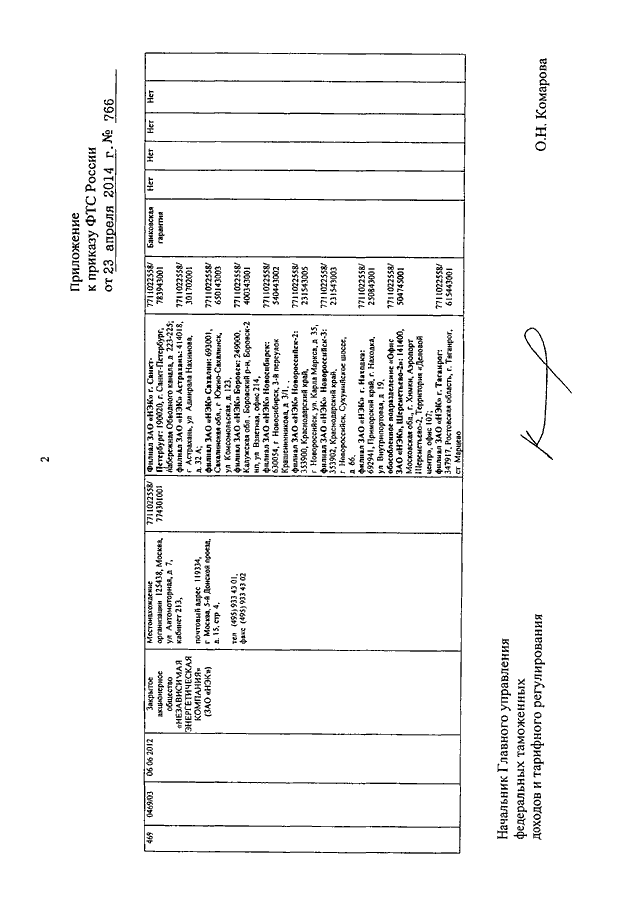 ПРИКАЗ ФТС РФ от 23.04.2014 N 766