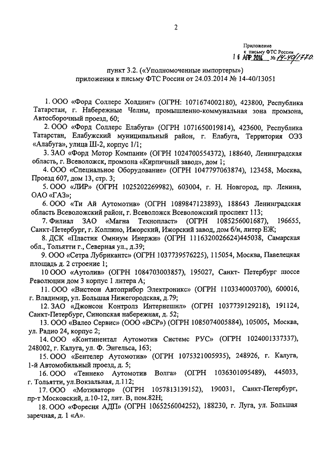 "О ВНЕСЕНИИ ИЗМЕНЕНИЙ В ПИСЬМО ФТС РОССИИ ОТ 24.03.2014 N 14-40/13051 "О ТОВАРНЫХ ЗНАКАХ КОМПАНИИ "FORD MOTOR COMPANY"