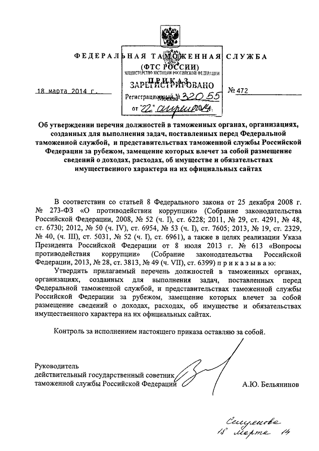 ПРИКАЗ ФТС РФ от 18.03.2014 N 472