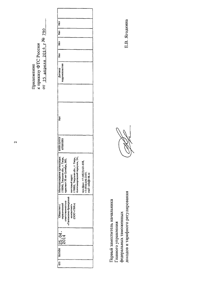 ПРИКАЗ ФТС РФ от 25.04.2014 N 790