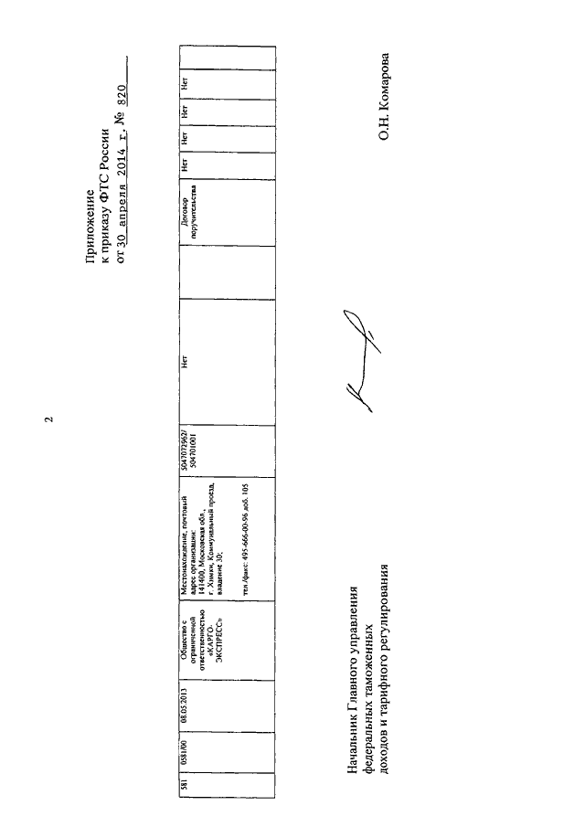 ПРИКАЗ ФТС РФ от 30.04.2014 N 820