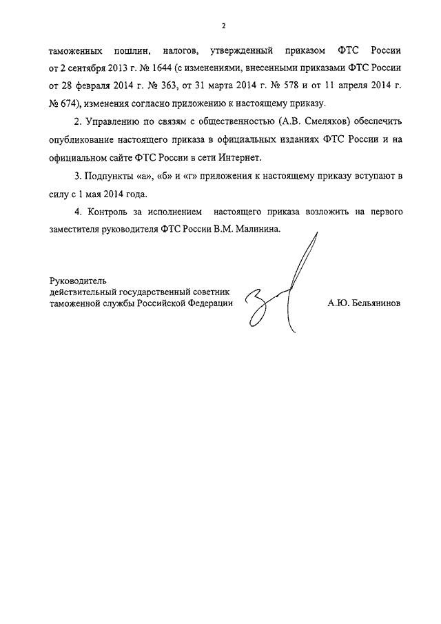 ПРИКАЗ ФТС РФ от 30.04.2014 N 817