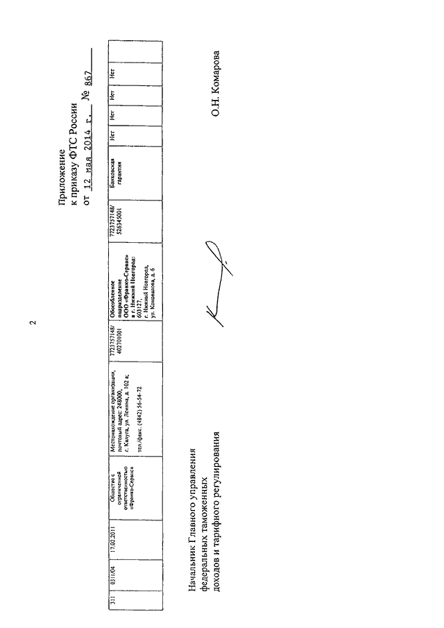 ПРИКАЗ ФТС РФ от 12.05.2014 N 867