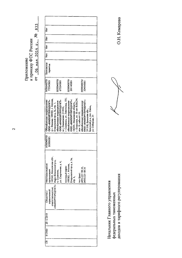 ПРИКАЗ ФТС РФ от 06.05.2014 N 833