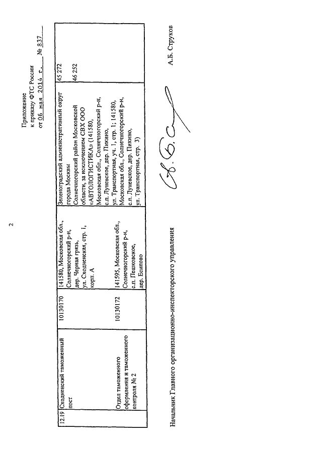 ПРИКАЗ ФТС РФ от 06.05.2014 N 837