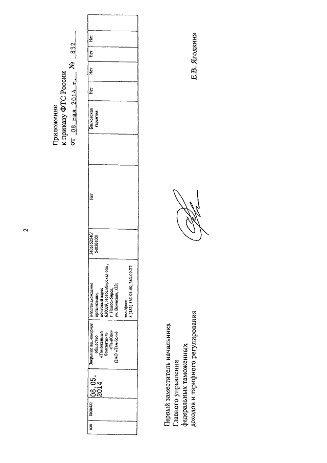 ПРИКАЗ ФТС РФ от 08.05.2014 N 852