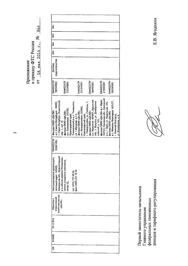 ПРИКАЗ ФТС РФ от 08.05.2014 N 864