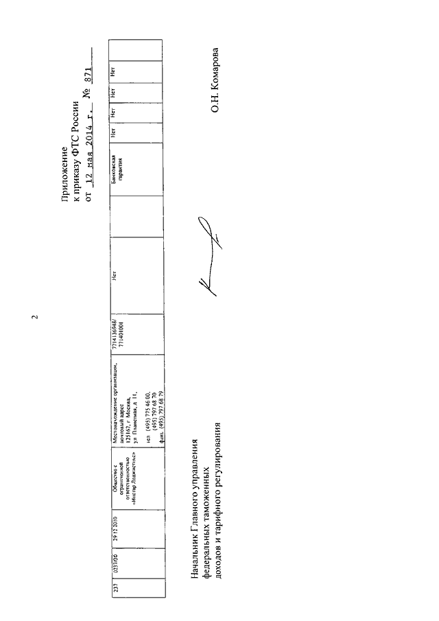 ПРИКАЗ ФТС РФ от 12.05.2014 N 871