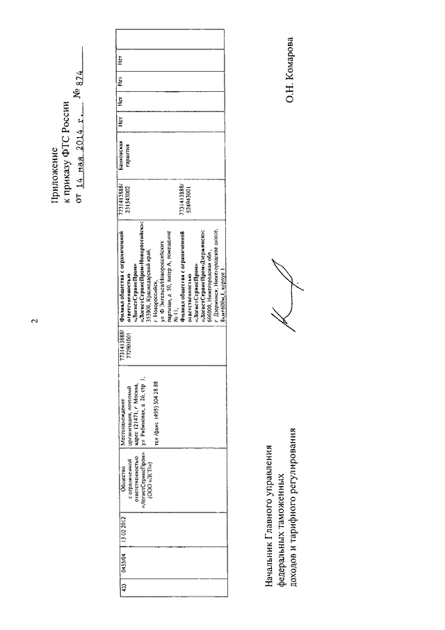 ПРИКАЗ ФТС РФ от 14.05.2014 N 874