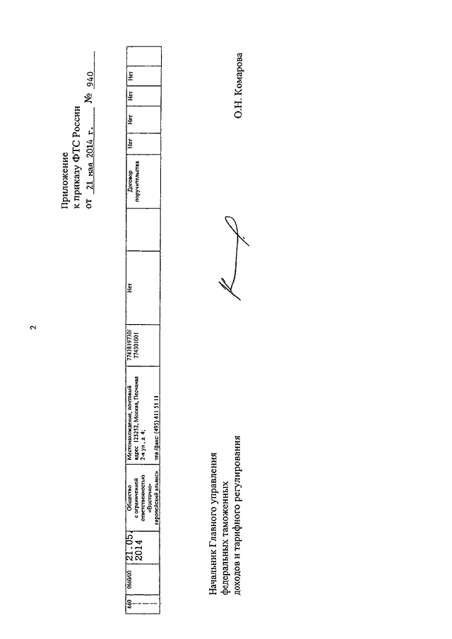 ПРИКАЗ ФТС РФ от 21.05.2014 N 940