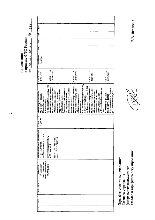 ПРИКАЗ ФТС РФ от 20.05.2014 N 933