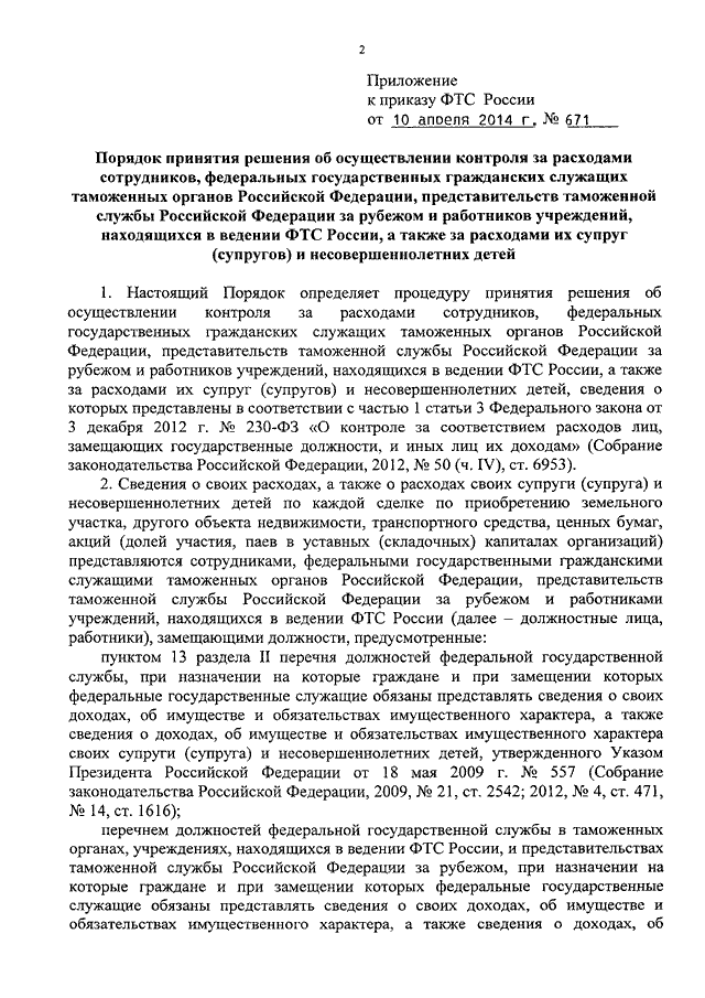ПРИКАЗ ФТС РФ от 10.04.2014 N 671