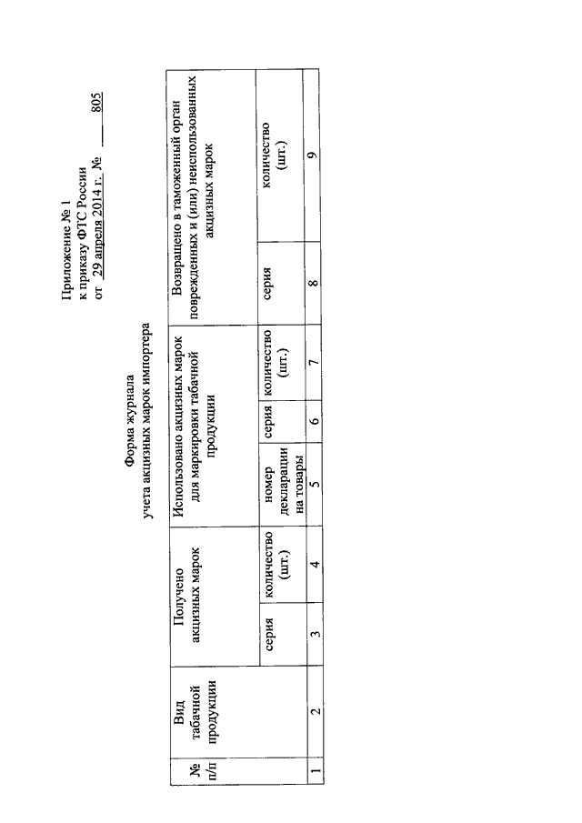 ПРИКАЗ ФТС РФ от 29.04.2014 N 805