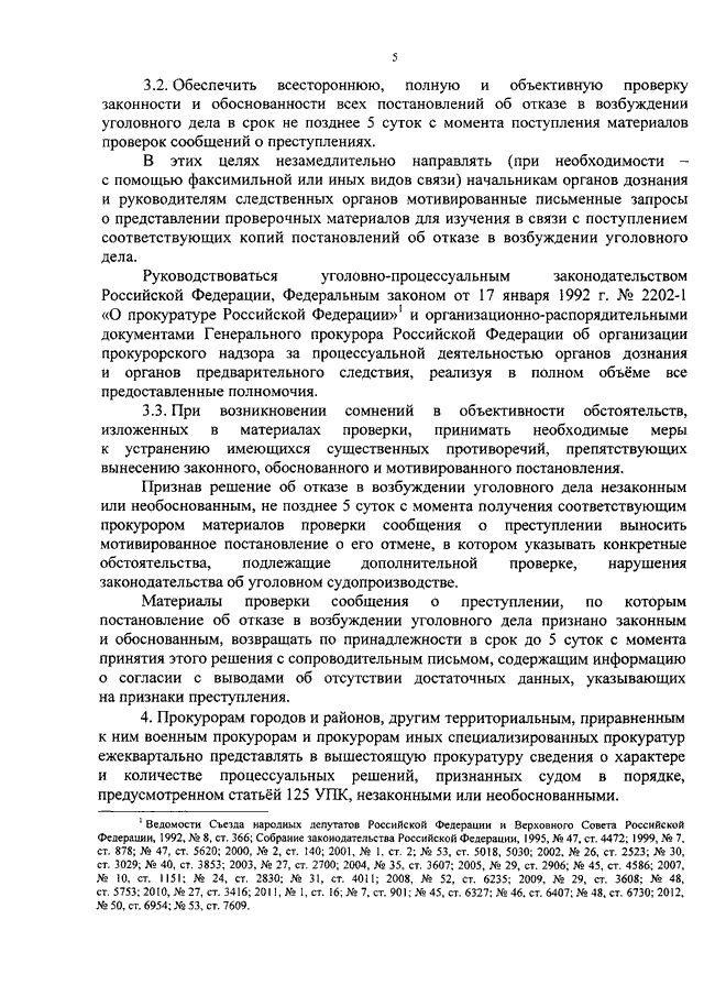 "ОБ УСИЛЕНИИ ПРОКУРОРСКОГО НАДЗОРА И ВЕДОМСТВЕННОГО КОНТРОЛЯ ЗА ЗАКОННОСТЬЮ ПРОЦЕССУАЛЬНЫХ ДЕЙСТВИЙ И ПРИНИМАЕМЫХ РЕШЕНИЙ ОБ ОТКАЗЕ В ВОЗБУЖДЕНИИ УГОЛОВНОГО ДЕЛА ПРИ РАЗРЕШЕНИИ СООБЩЕНИЙ О ПРЕСТУПЛЕНИЯХ"